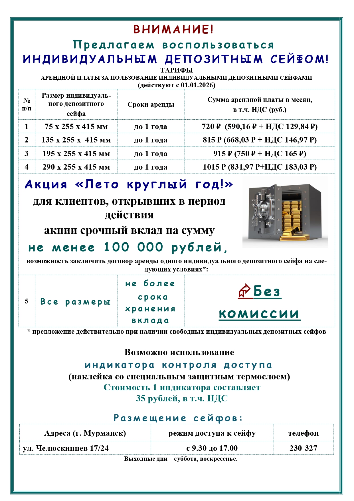 Ознакомиться с правилами аренды индивидуальных депозитных сейфов можно здесь.